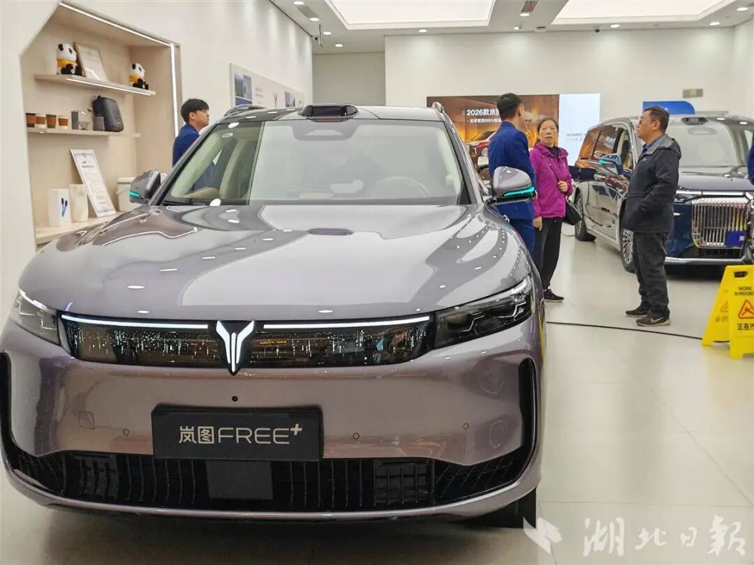 ▲消费者在岚图汽车武昌万象城门店挑选车辆