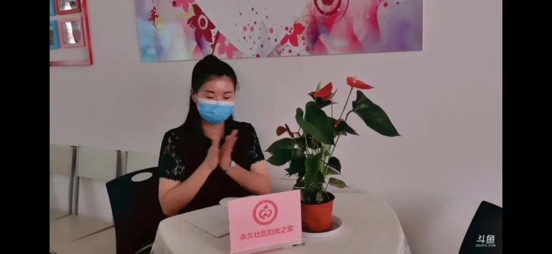 上午10点,直播正式开始,社区妇联主席孙清作为主播,介绍了永久社区妇女之家阵地建设,特别展示了妇女之家的服务剪影及手工作品。