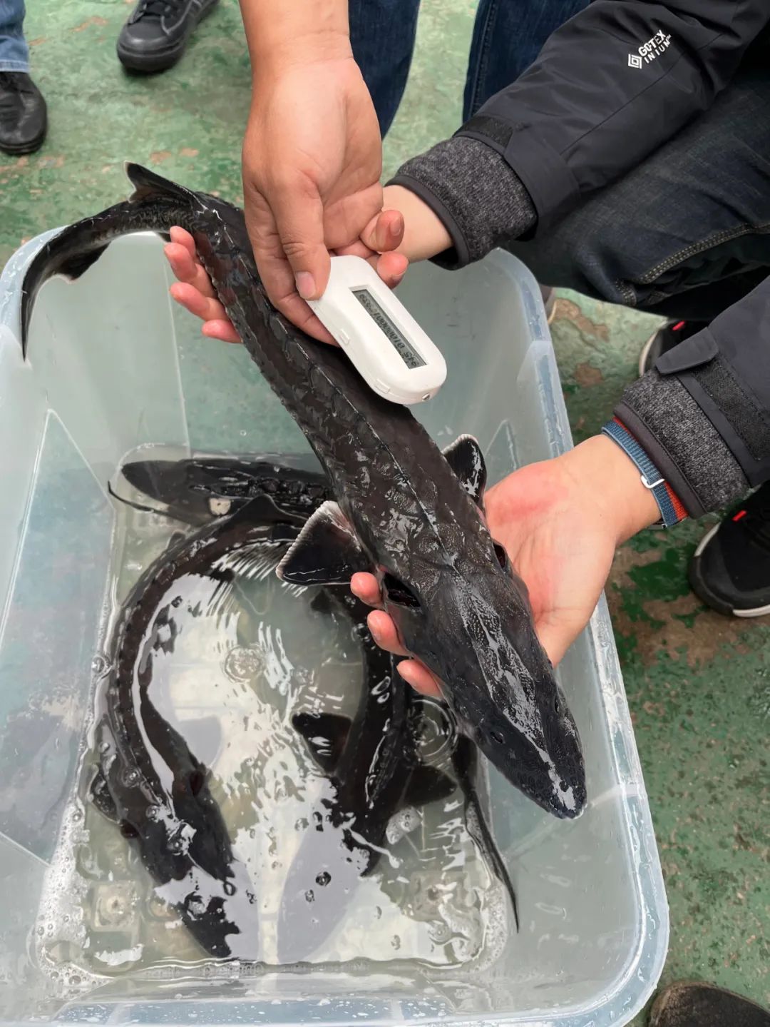经过一年半的人工饲养,这批“子2.5代”中华鲟鱼苗体态健硕,体长普遍达到50-80厘米,重约1-3公斤。