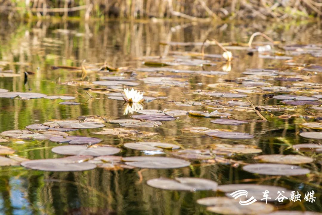 “你们看,睡莲开了。”车都生态公司工作人员刘文明、宗建林每天的工作就是划着船在湖面清理杂物,“睡莲对水质要求高,III类水才能存活。现在水清了,口渴的时候用手捧一捧水就可以喝。”
