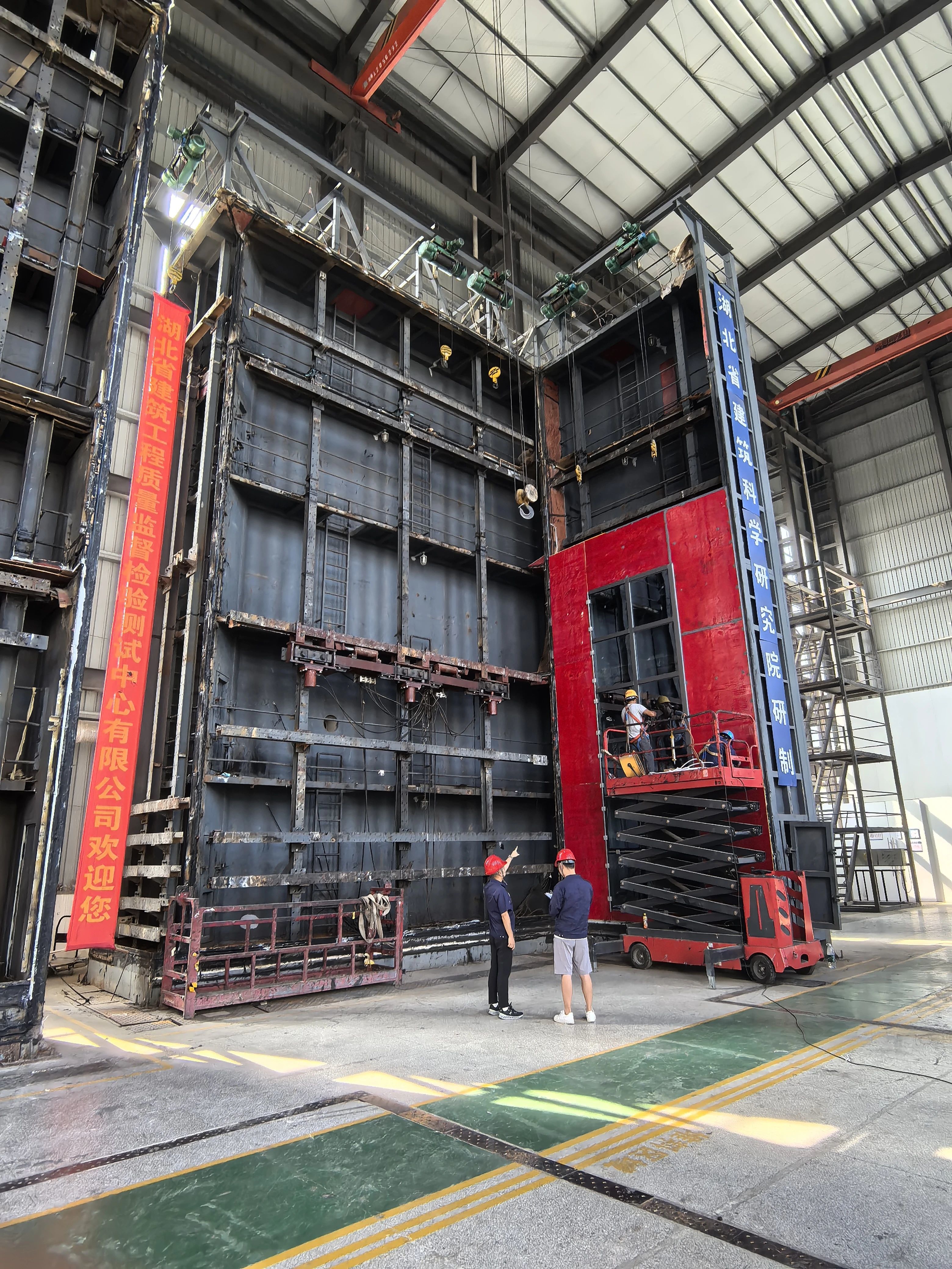 近日,在位于武汉经开区军山新城的湖北省建筑工程质量监督检验测试中心有限公司(以下简称“省检测中心”)大型幕墙检测实验室,高达十余米的钢架结构矗立。技术人员正对巨型玻璃幕墙施加飓风级风压,精密仪器实时捕捉着每一丝异常声响。