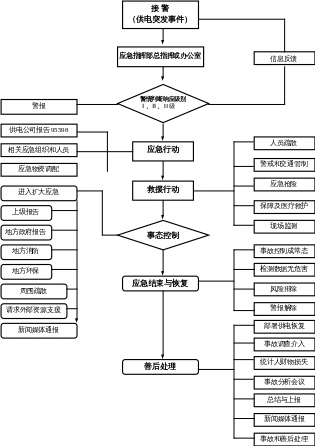 (2)统一指挥,分工负责。在管委会统一领导下,按照统一协调、分级负责、属地为主、企业配合的原则建立供电事故应急处置体系。管委会各部门、电力企业按照各自职责,组织开展事故处理、事故抢险、电网恢复、应急救援、维护稳定、恢复生产等各项应急工作。