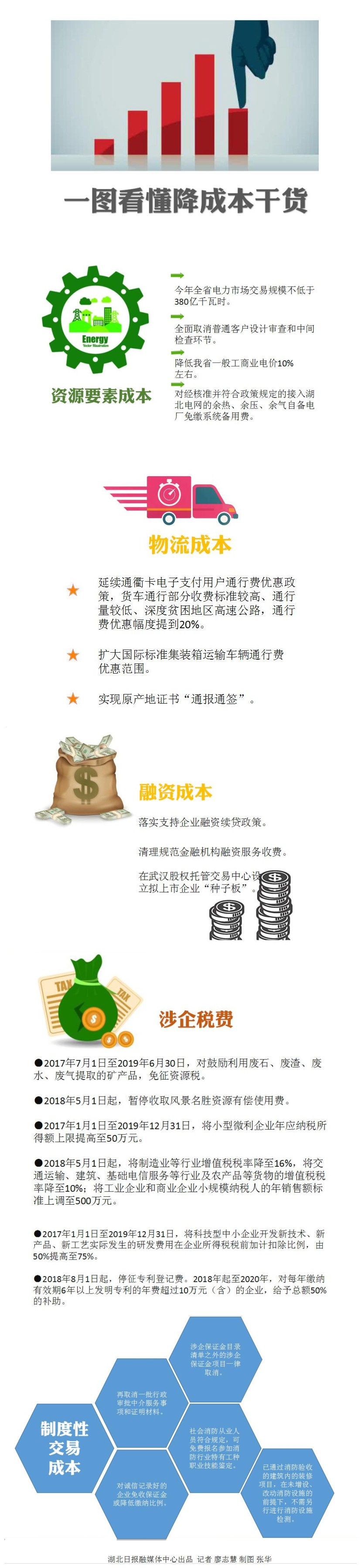 (记者廖志慧、通讯员杨军、实习生罗心怡)记者5月3日获悉,继2016年、2017年连续两年大举降成本后,湖北今年再度放出“大招”,出台“31条”措施,展开第三轮降成本行动,进一步较大力度降低企业成本。